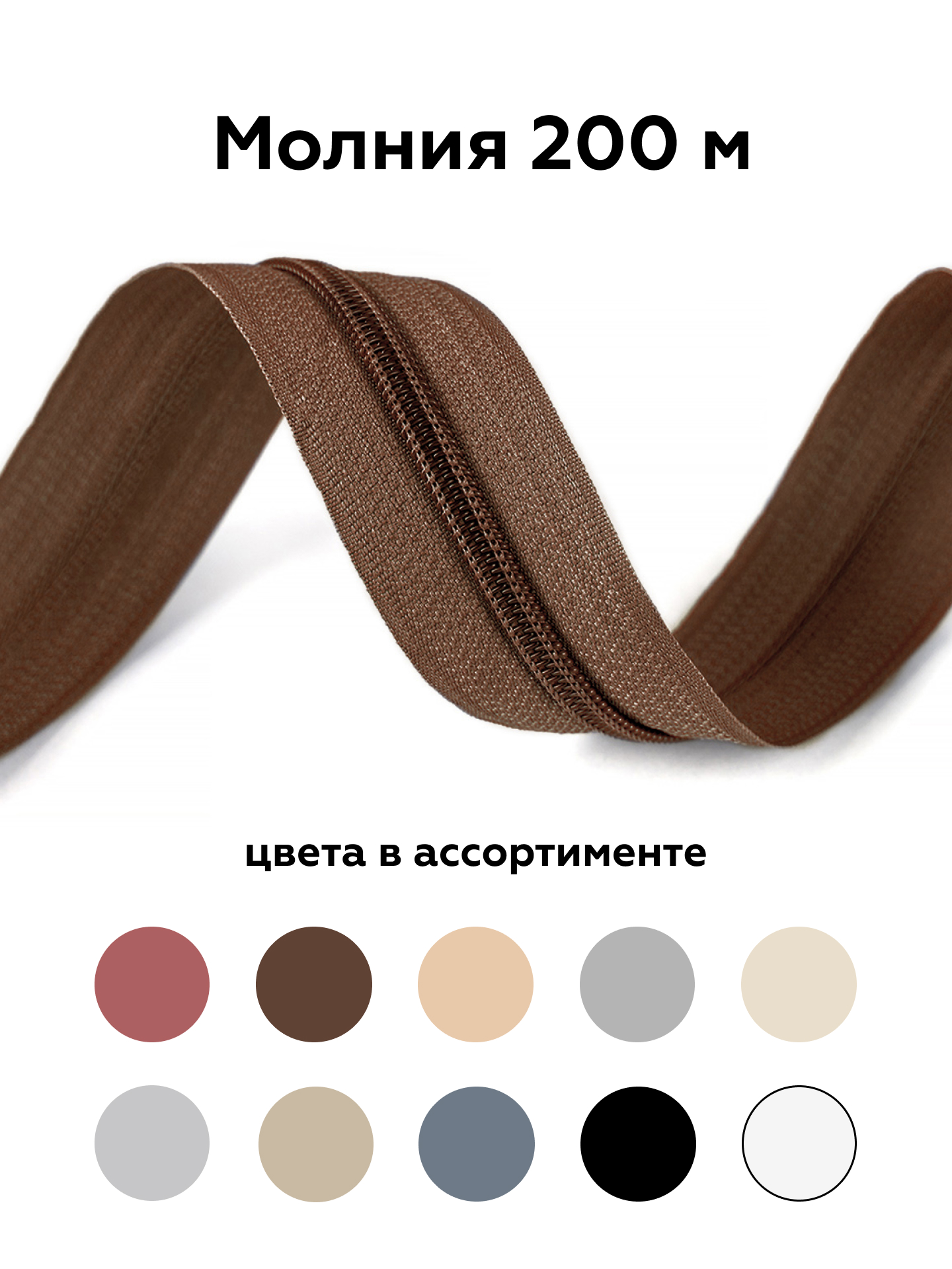 В наш постоянный ассортимент входят витые молнии Т-5 различных цветов с замками в цвет молнии или цвета никель, хром.