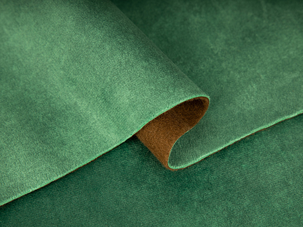 Крашение готовым полотном и легкий "облачный" принт придают велюру глубокий, насыщенный цвет, который не выгорает на солнечном свете и не теряет интенсивность при стирке. Мягкая флисовая основа обеспечивает дополнительную мягкость при сидении, а также препятствует скольжению материала по заготовке, что будет особенно полезно при обивке мебели сложной или обтекаемой формы.