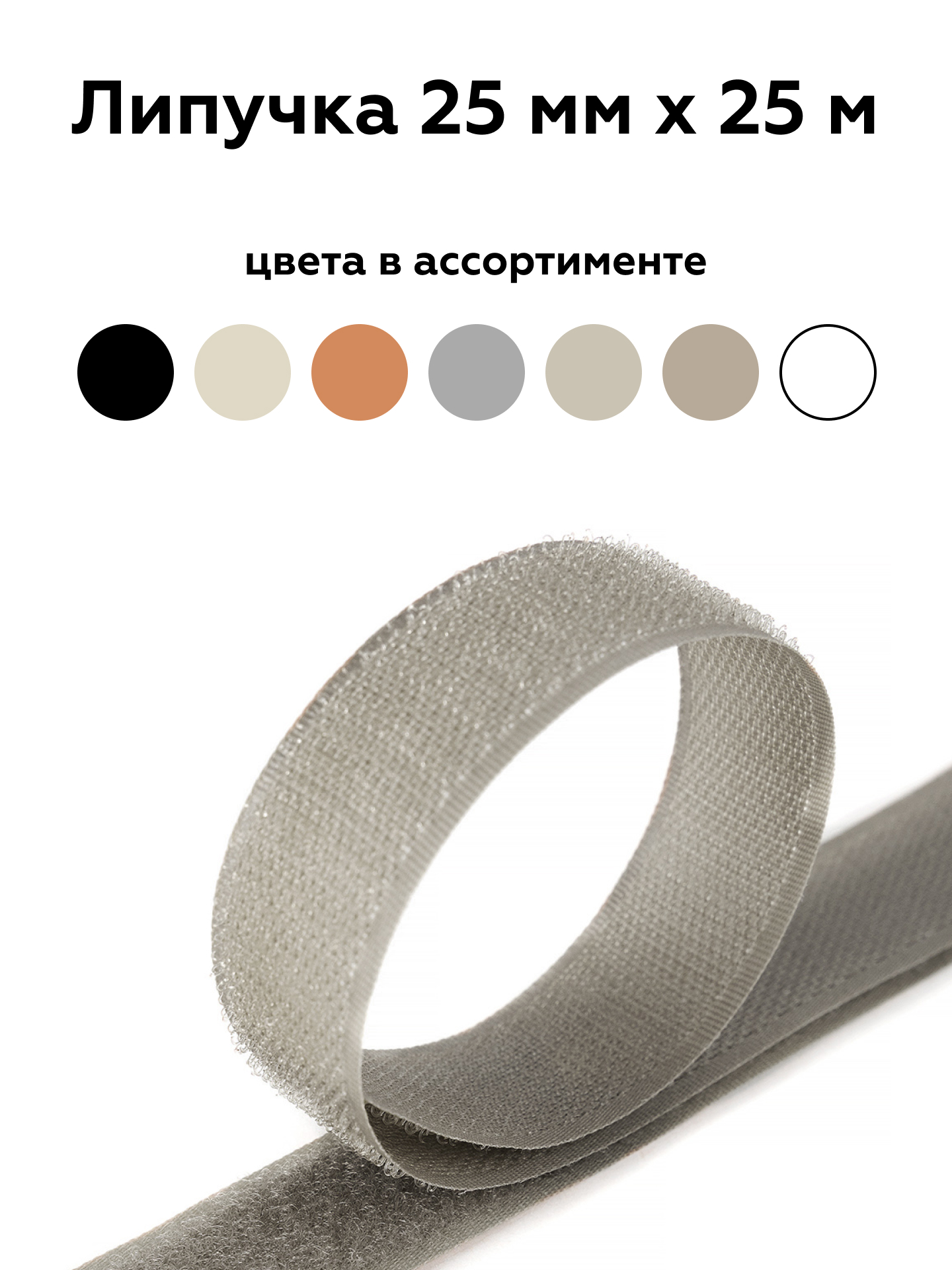 Липучка 25мм сер-беж 100